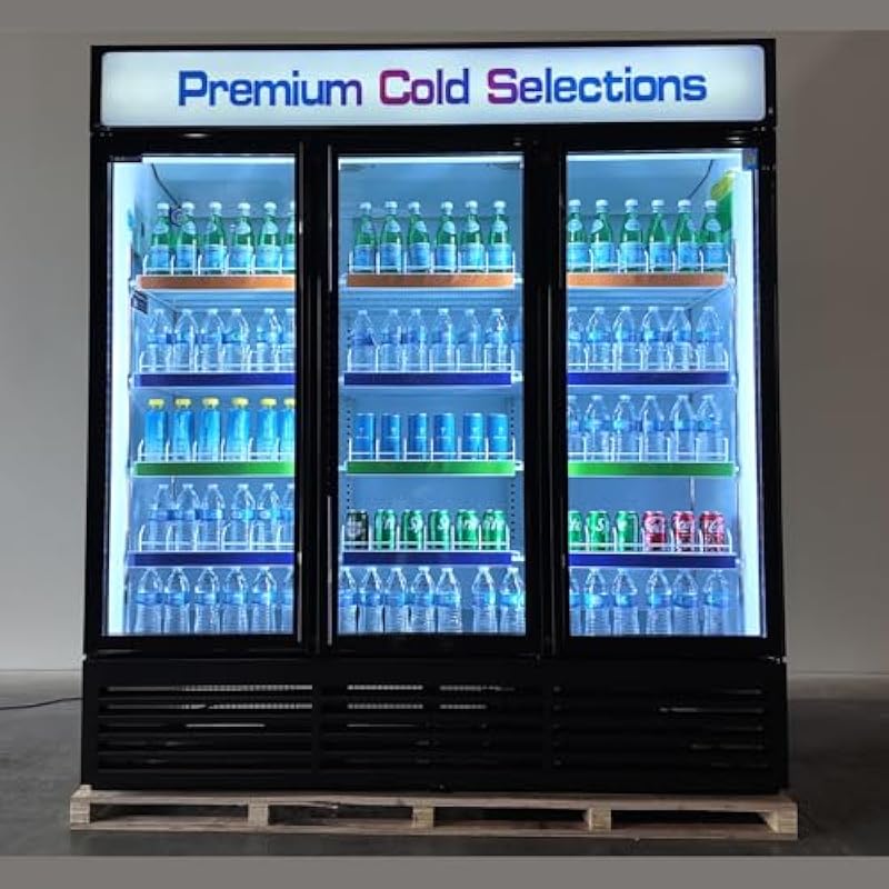 - Thick Steel & Dual-layer Glass-Made of powder coated galvanized steel sheet, this merchandiser refrigerator is more durable and rust-resistant. The dual-layer glass improves insulation and durability while blocking harmful UV light. The transparent glass doors allow customers to see the snacks and beverages inside without having to open the doors and let cold air escape.