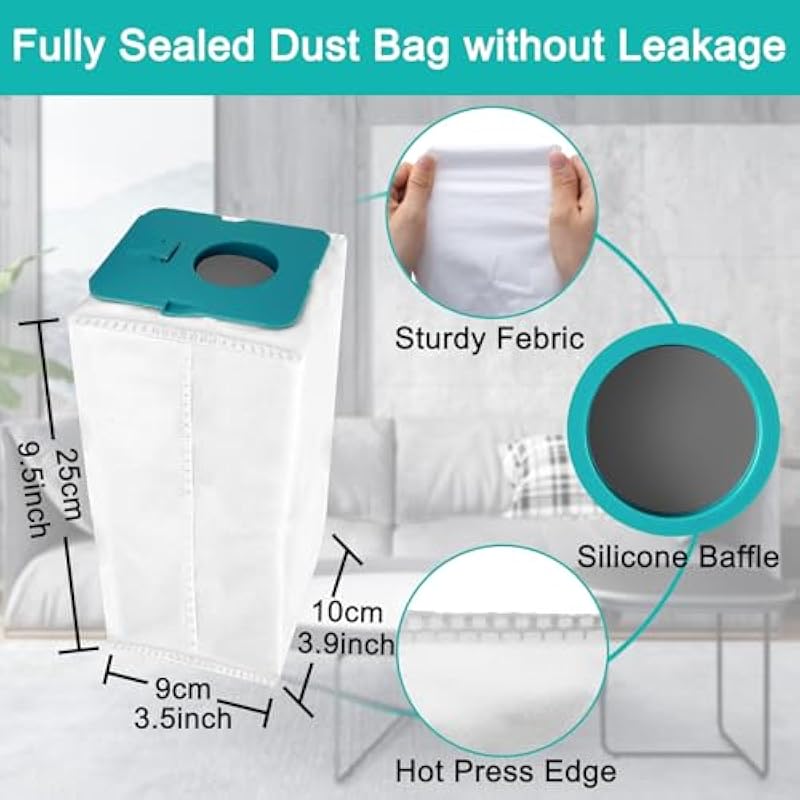 - 【Large Capacity】Vacuum bags size 9.5in x 3.9in x 3.5in, 2.5L large capacity holds up to 60 days of dust.