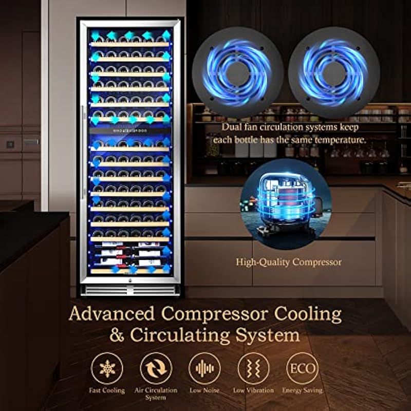 - 【40-65°F Dual Zone Control】Featuring a unique dual – zone design, the upper zone of this cooler ranges from 40°F to 55°F, ideal for storing white wines, champagnes, and other delicate varieties. The lower zone, with a temperature range of 55°F to 65°F, is perfect for red wines, allowing them to age and develop their complex flavors. With two distinct temperature zones, you can satisfy the preferences of both white and red wine enthusiasts simultaneously.
