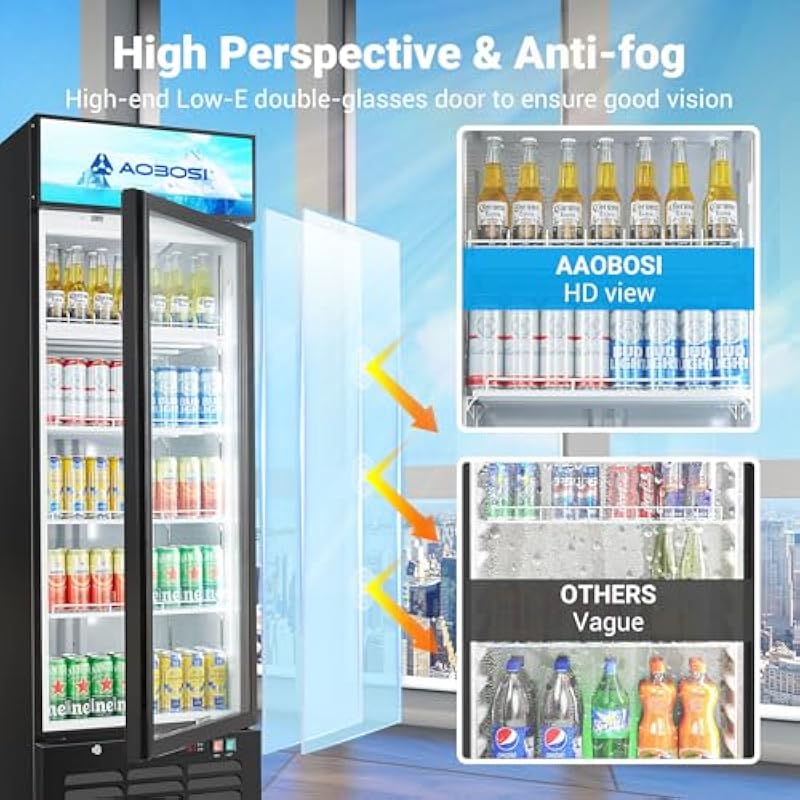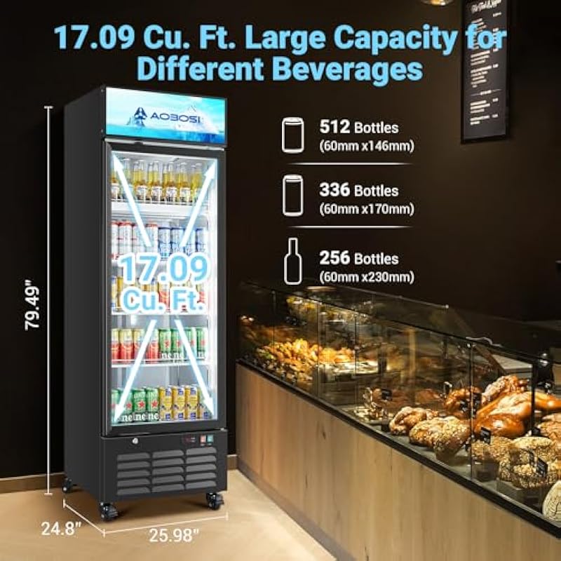 - 【Large Capacity&Adjustable Temperature Control】AAOBOSI 17.09Cu. Ft. merchandiser refrigerator allows you to stock up on a significant amount of beverages, beer, milk, food and even flowers. It’s ideal for restaurants, cafes, convenience stores,Bars, petrol stations, gyms and lobbies.Compared to traditional mechanical knob-based temperature adjustment, our commercial beverage refrigerators allow for more accurate and easier temperature adjustment with the push of a button and a digital display(32℉-50℉)