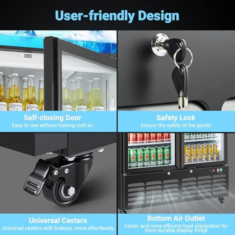 - 【Double Layer Glass Double Door & Auto Defros】Commercial display refrigerator offer excellent insulation to keep the internal temperature constant, saving you money on your electricity bill. Its rugged, rust-resistant properties allow it to remain beautifully clean in a variety of temperature environments. The glass door merchandiser refrigerator anti-fog effect provides a clear line of sight, making it easy for customers to quickly and easily identify the products they need.Commercial fridge improves insulation and durability while blocking harmful UV rays.