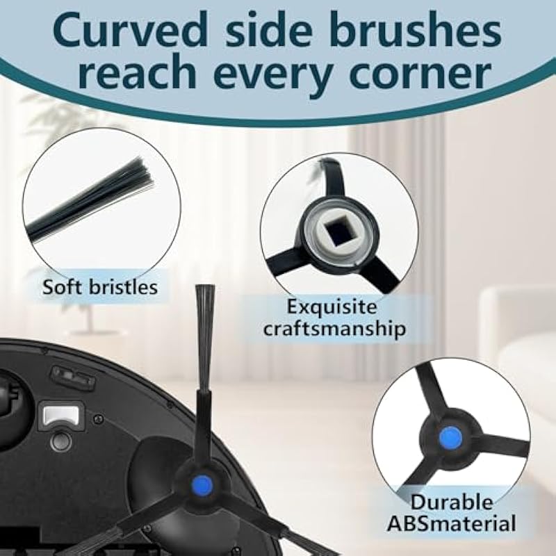 - Warm tips:The main brush and side brush can be washed and reused.To keep your robot operating good and ensure cleaning efficiency, depending on the frequency of use, we recommend to replace the robot vacuum accessories every 2 or 3 months