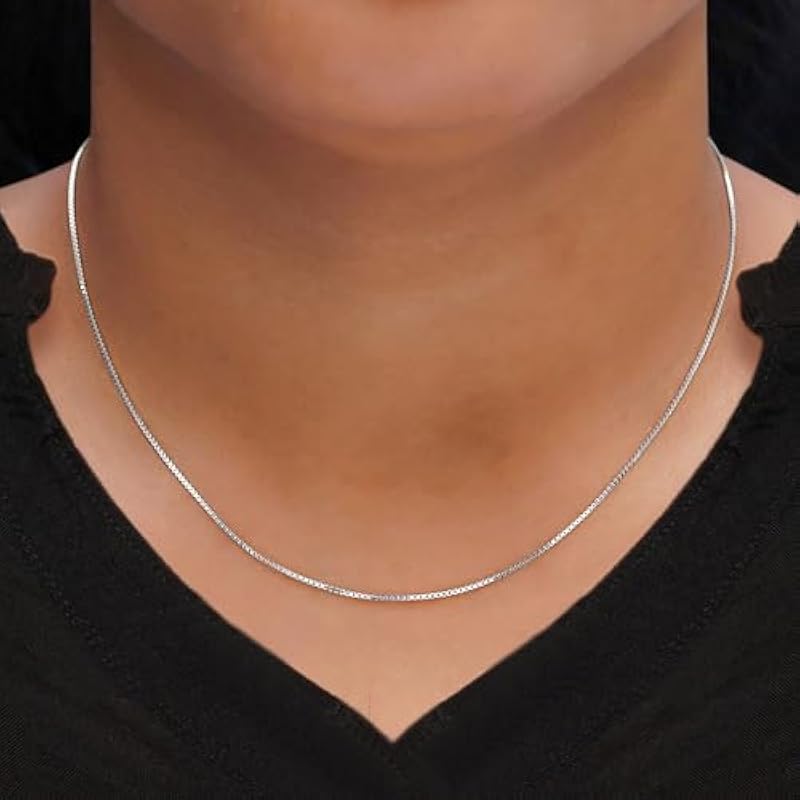 AFFY Chain Necklace for Women and Men 1mm Box Chain Necklace with Spring Ring Clasp in 14K Gold Over 925 Sterling Silver