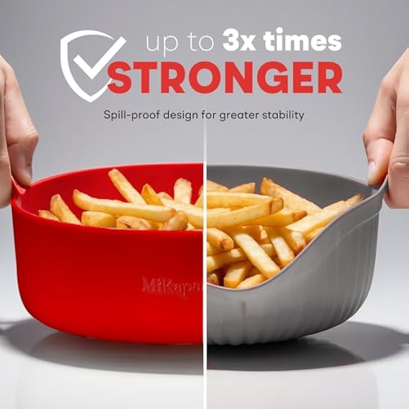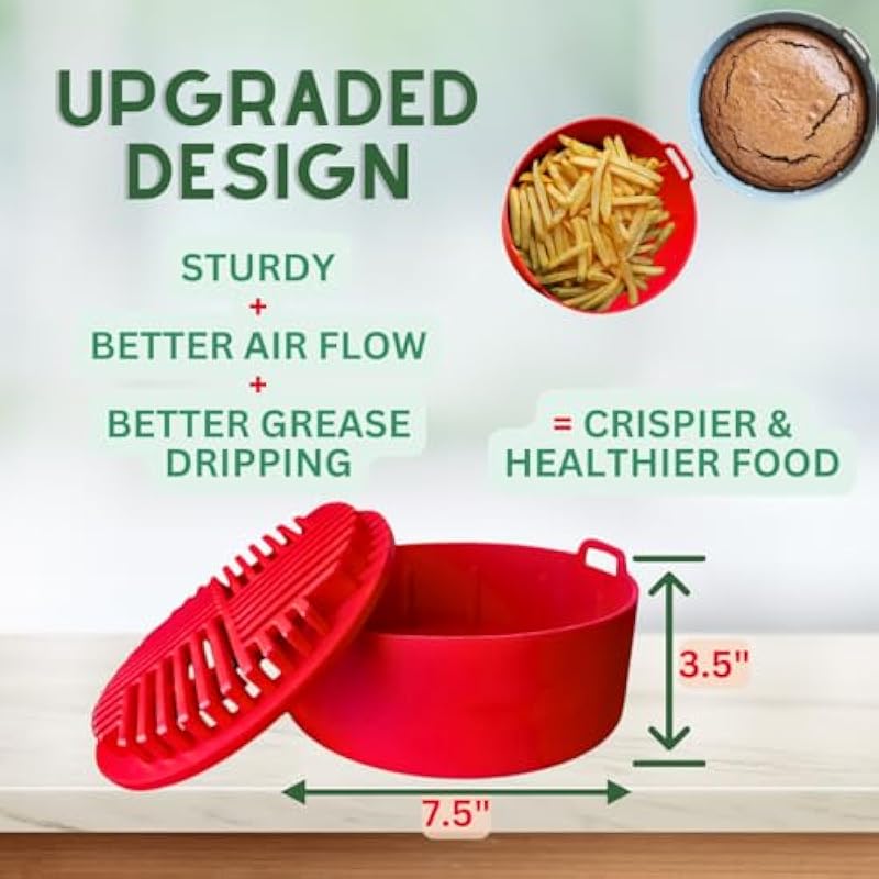 - 🌟Better Grease Capture & Air Circulation for Crispier food: The Grill shaped bottom on this air fryer silicone pot keeps food away from dripped grease, so you can enjoy crispy food that’s full of flavor; The silicone air fryer basket also increases air circulation for faster, more uniform cooking; This newly designed air fryer liner is a game changer compared to other airfryer liners.