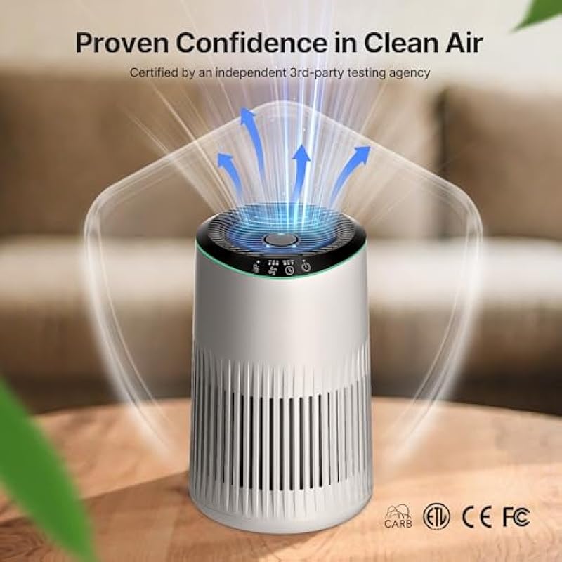 - All-Encompassing 360-degree Clean Air: Our air purifiers for bedroom features a 360-degree intake system, delivering thorough, even purification—no blind spots, no matter where you put it. Perfect for bedrooms, dorms, offices, kitchens, basements, and more. Its sleek, portable design allows for easy movement from room to room, ensuring clean air accompanies you wherever you go