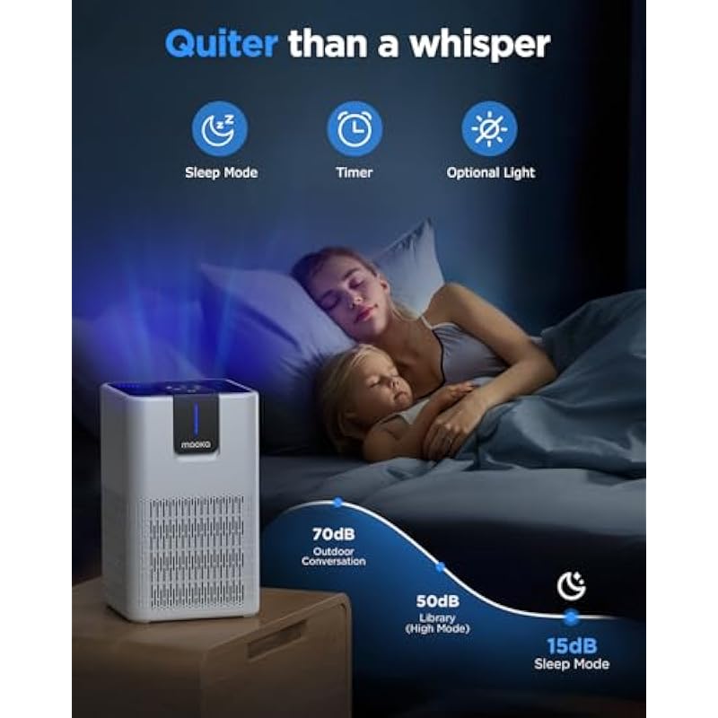 - Quality Assurance & Worry-Less Service : CARB/CE/FCC/RoHS/DOE certified and ETL listed(Available for California). Our HEPA air purifier for bedroom does not produce trace amounts of ozone and is environmentally friendly. PS: Purchase MOOKA official replacement filter on Amazon by searching for B0D3FYKQ6B