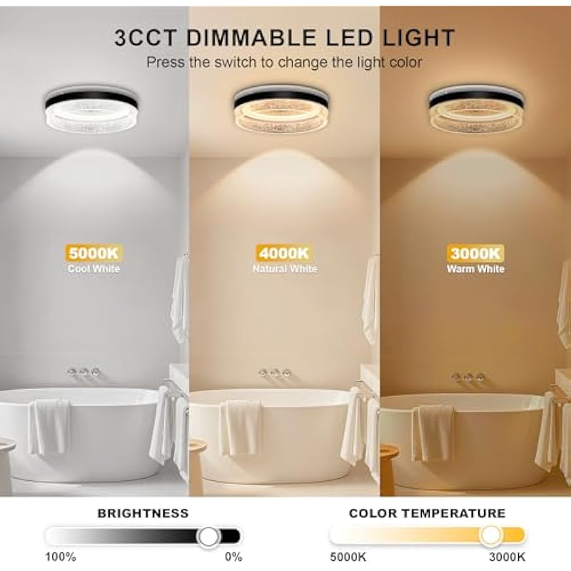 - EASY TO INSTALL: Bathroom fan light combo are ceiling-mounted and simple to operate, eliminating the need to access the attic and making it easy to achieve efficient ventilation for a relaxing environment. Housing Dimensions: 9″ x 9″ x 5-3/4″, Panel Size: Φ13-3/8, Duct Diameter: Φ4″