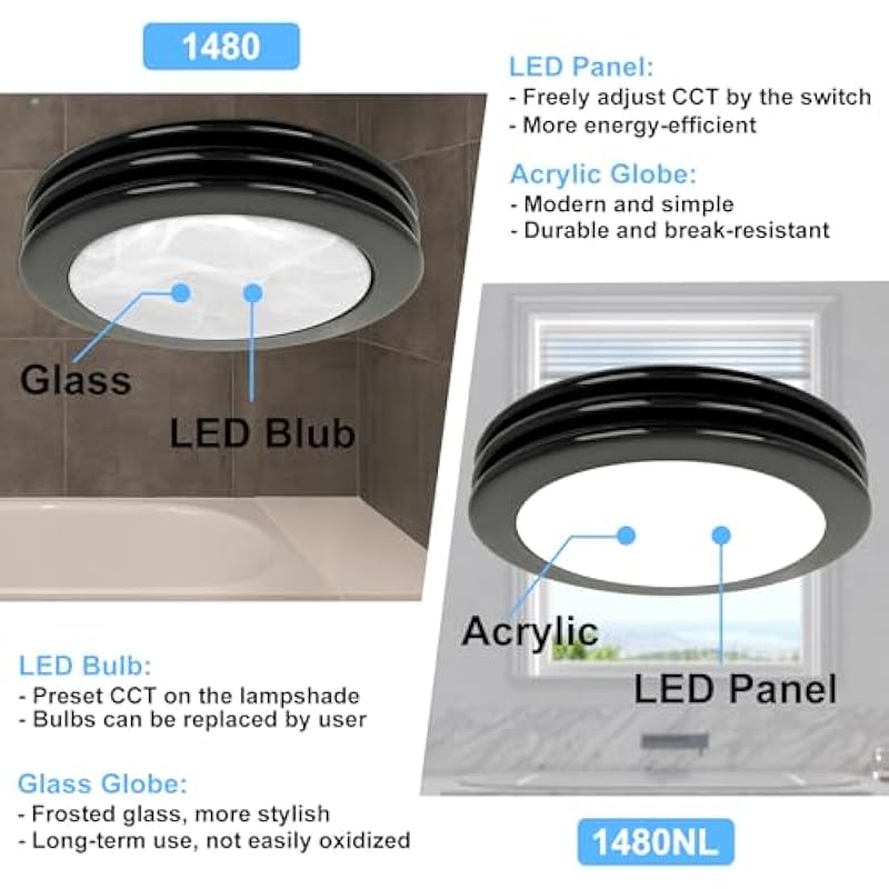 | Efficiency | High (80 CFM and 2.0 sones) |