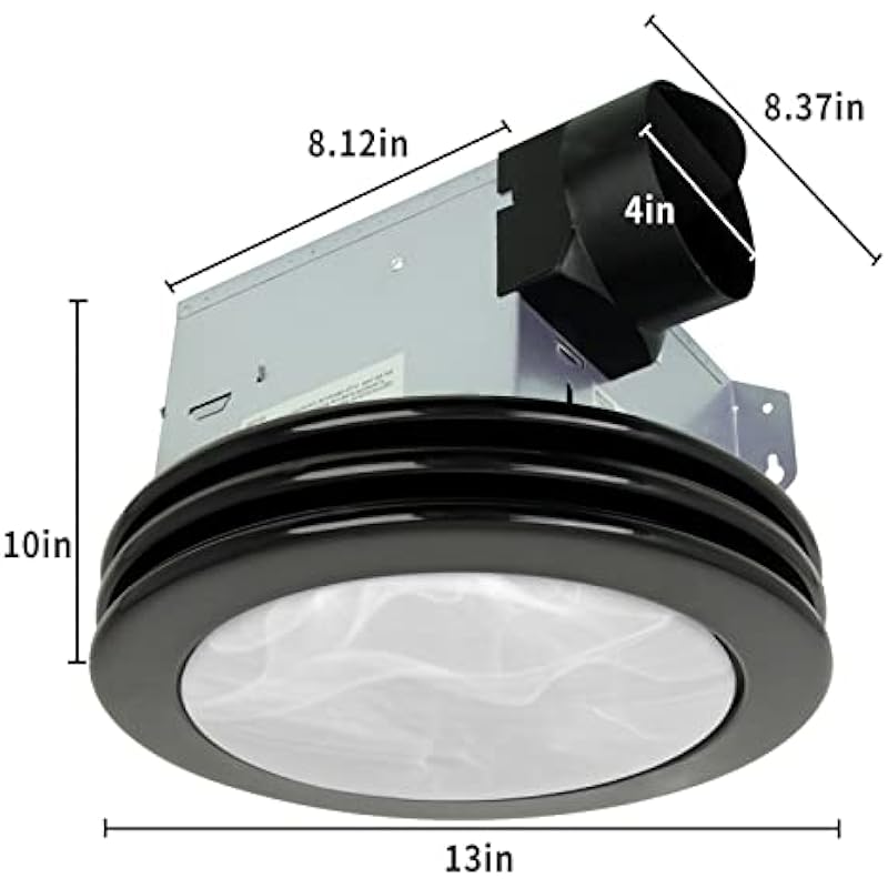 - EASY INSTALLATION: The bathroom ceiling fan with light is easy to install or replace existing product for DIY’ers with no attic access required. Housing Dimensions 8-1/2″ x 8-1/2″ x 5-3/4″. Light Cover diameter is φ13. Click the installation guide on this page for more details and professional instruction