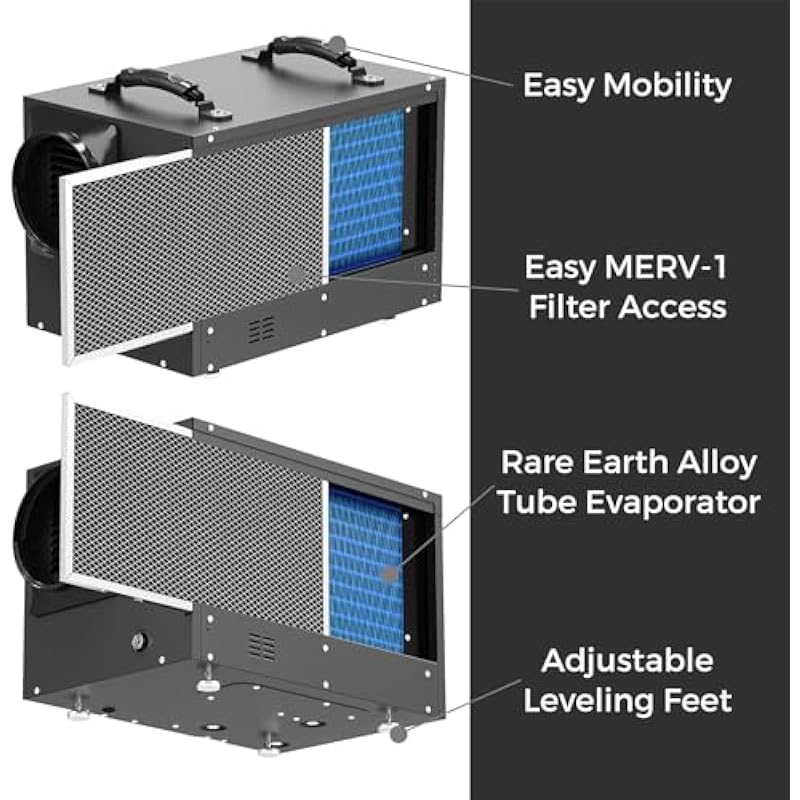 - Designed for the Modern Home:For your satisfaction, we designed this professional dehumidifier with the modern consumer in mind. All special features make it the best for crawlspace, basement, and commercial applications, auto defrosting system, optional Remote control system, MERV-8 filter, Low-temperature operation, cETL Listed