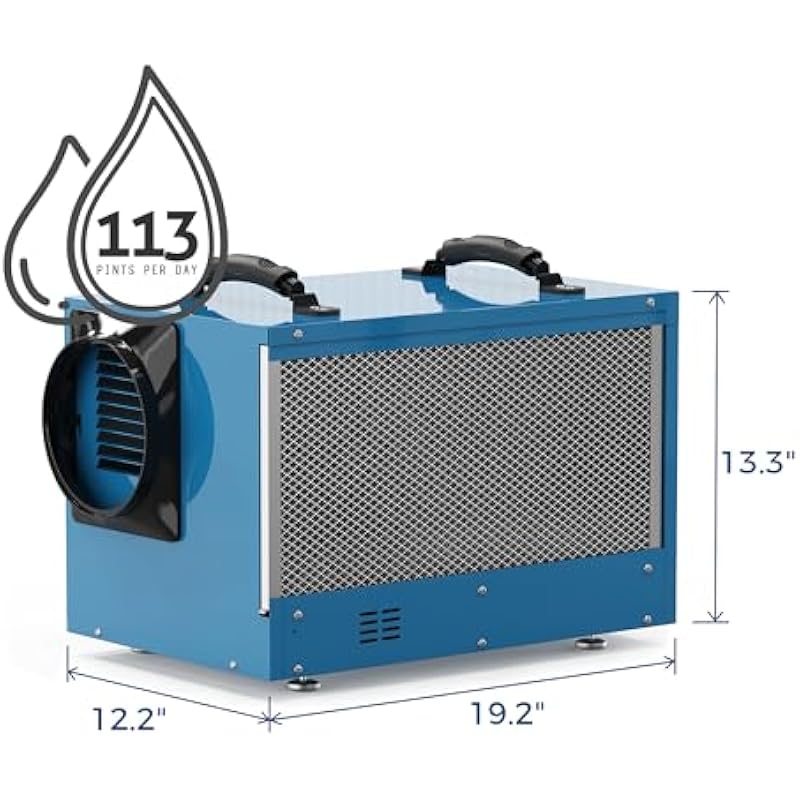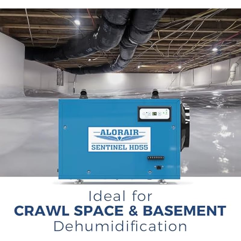 - 113 Pint Dehumidifier: AlorAir Sentinel HD55 commercial dehumidifier can remove 113 PPD at saturation, 53 pints per day at AHAM, up to 1,200 sq.ft, lowering the humidity to comfortable levels in a short period. On the other hand, this cETL-listed dehumidifier is made of a metal outer casing that withstands more rugged conditions, ensuring long-term use and easy maintenance. Fit any crawl spaces, basements, warehouses, offices, factories, shops, storage areas