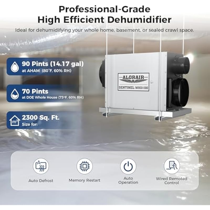 ALORAIR Whole House Dehumidifier, 90 PPD Commercial Grade Whole Home Dehumidifiers for Garages, Water Damage Restoration, 2300 Sq.Ft dehumidifiers for Crawl Space