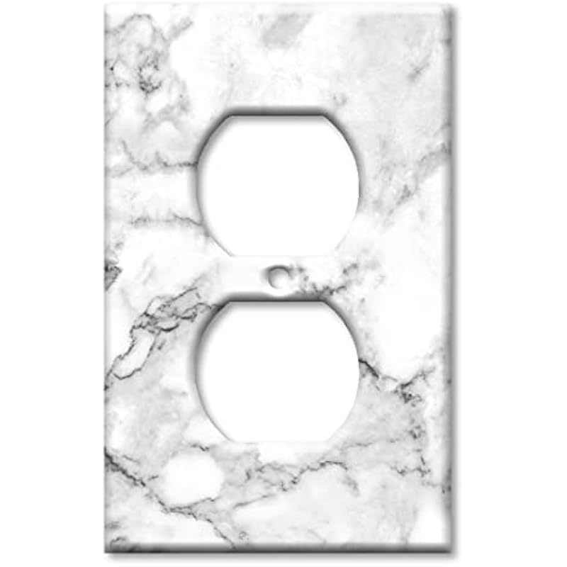 - Made in the USA: OVERSIZED Switch Plate – OVER SIZE Wall Plate – White and Grey Marble – Granite Print Decorative Printed One Gang Duplex – Outlet Wall Plate. Image printed on a solid metal 1 Gang Outlet – Duplex Plate Cover.