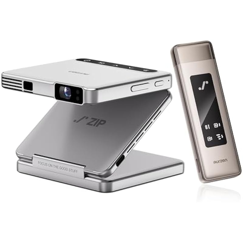 Aurzen ZIP Tri-Fold Truly Portable White DLP Projector with PowerPlay and MagPlay – Zero-Lag Focus, One-Click Screen Mirroring, 3H Playtime