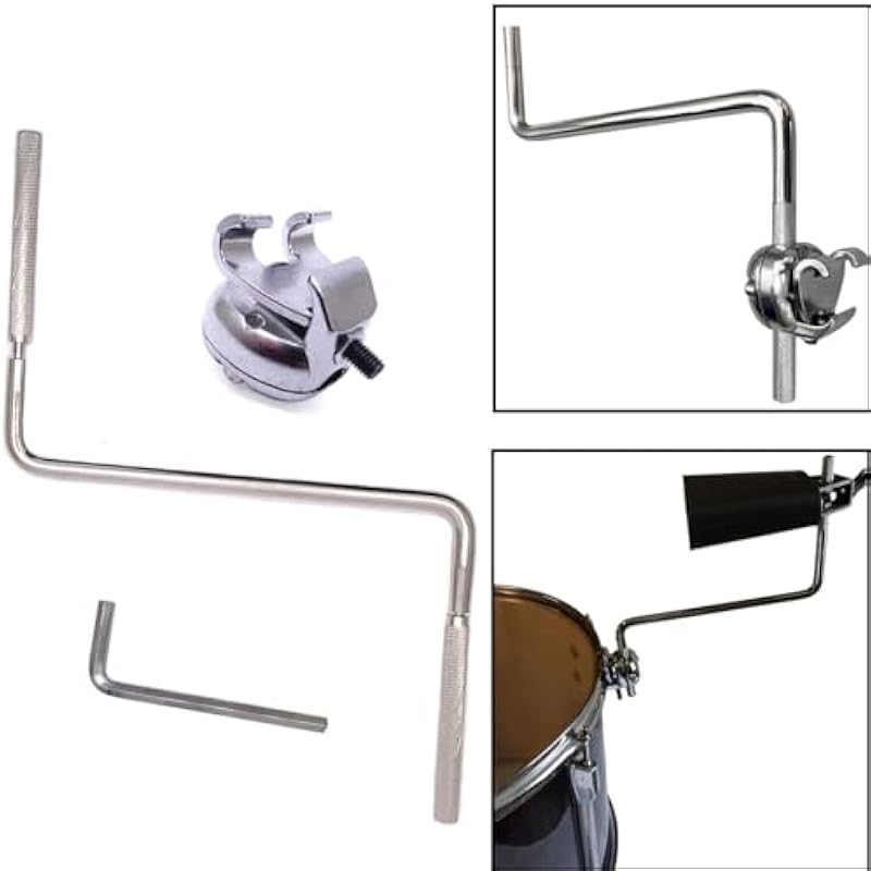 - Easy to install: The cowbell mount rod is designed with a 10mm diameter and is compatible with various drum kits and percussion instruments. Adjustable Hoop Clamp attaching accessory suit approx. 8 to 14mm rods arms or cymbal holders.