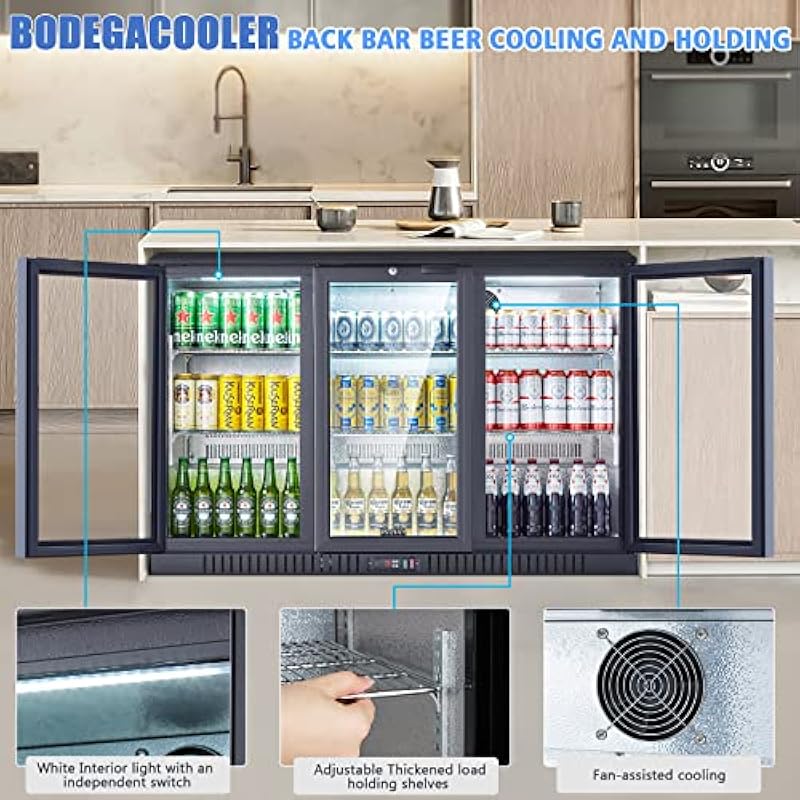 - ✅[ANTI-FOG LOW-E GLASS DOOR and Under Counter Height] For increasing your business,BODEGACOOLER beverage cooler crystal clear double-glazed glass door with low-e that features automatic defrost.To keep heat outside and more efficient,all 3 doors are rebound ,suitable for busy back bar.The upgraded compressor R600a makes it easier to satisfy customer with a instant beer drink,providing fast,strong,stable cooling to keep beverage in the best condition. Powerful cooling but operating with low vibration.