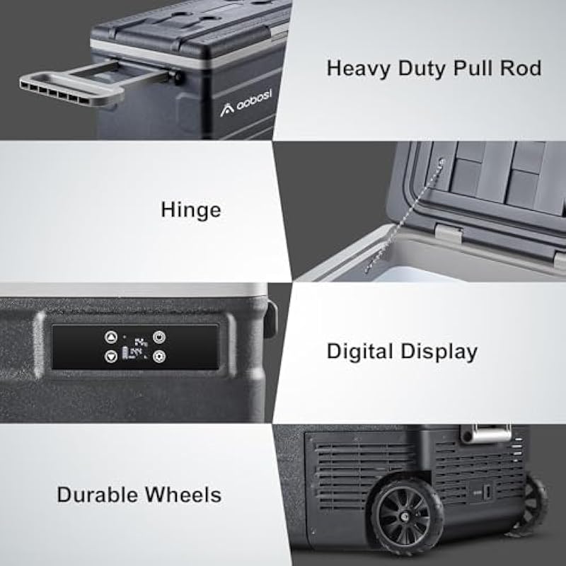 - 【Handle & Wheels Design】12v car refrigerator has heavy-duty handle and wheel is easier to move and portable.This 12 volt camping fridge with friendly design is very convenient for your daily use.BODEGACOOLER car refrigerator compatible with various power sources to meet your life needs.