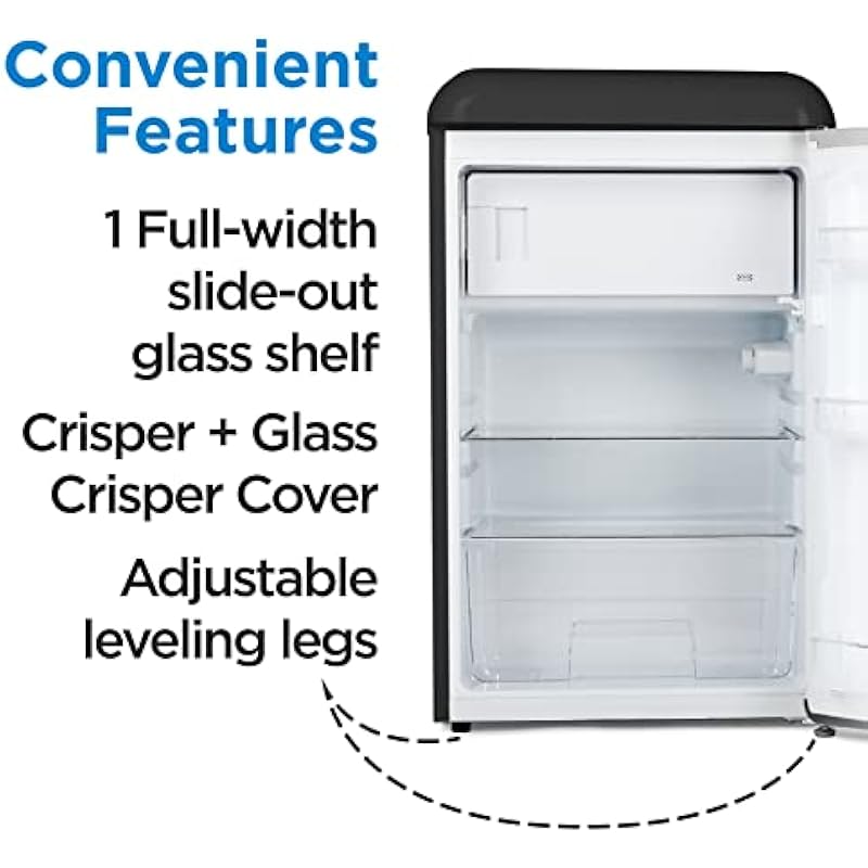- IMPRESSIVE FEATURES—This outstanding vintage kitchen appliance comes with an adjustable thermostat control, powerful interior light, space-saving flat back design, and adjustable leveling legs. Additionally, our COMMERCIAL COOL small fridge with freezer takes R600a refrigerant to ensure no ozone depletion.