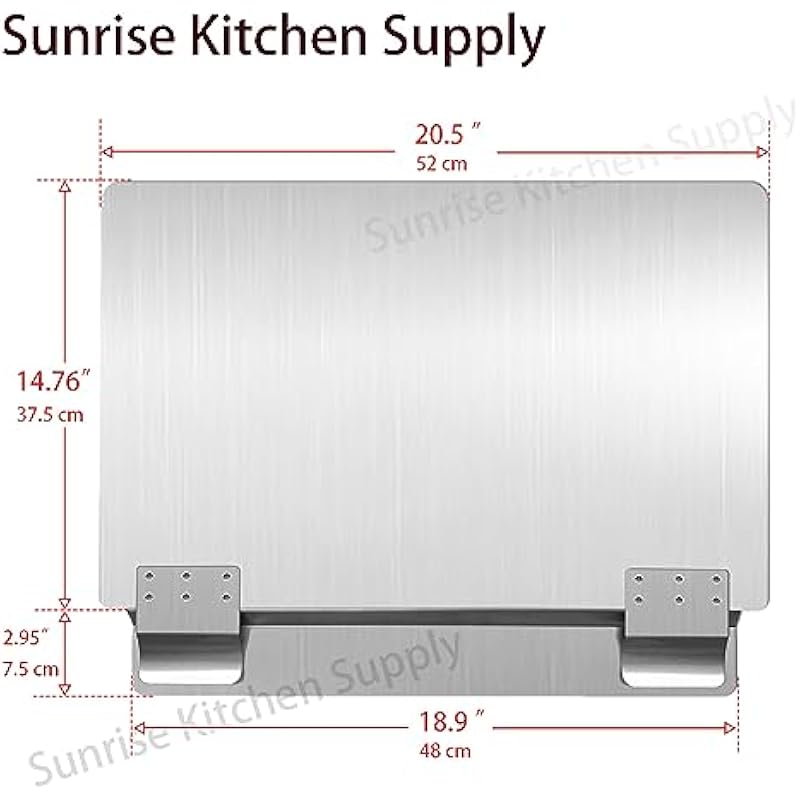 - Fryer splash guard: 20 1/2″ Length x 17 3/4″ Width.