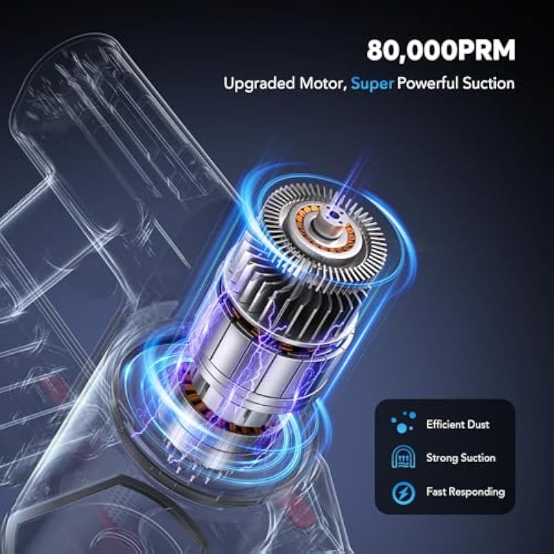 | Special Feature | 40 minutes of battery time; 80,000PRM upgraded motor; Upgraded anti-tangling brush; 0.5L large dust cup, a key to empty; 5 layers of precision filtration system; 12000Pa suction; A variety of accessories for a variety of use of scenes; 2600mAh removable battery, 3 charging ways |