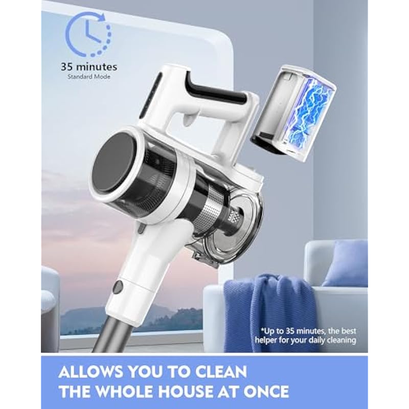 - Long-lasting 35-Minute Cleaning Time: The Comvtu vacuum cordless comes equipped with a 2200mAh rechargeable battery to reduce charging time and extend your cleaning session! Enjoy up to 35 minutes of uninterrupted cleaning.