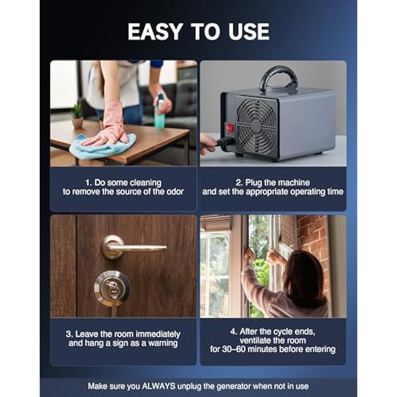 - Compact & Portable Design: Weighing just 4 pounds and coming with a built-in comfy handle, this ozone air purifier is effortlessly portable, making it an ideal choice for home, commercial, or even industrial use