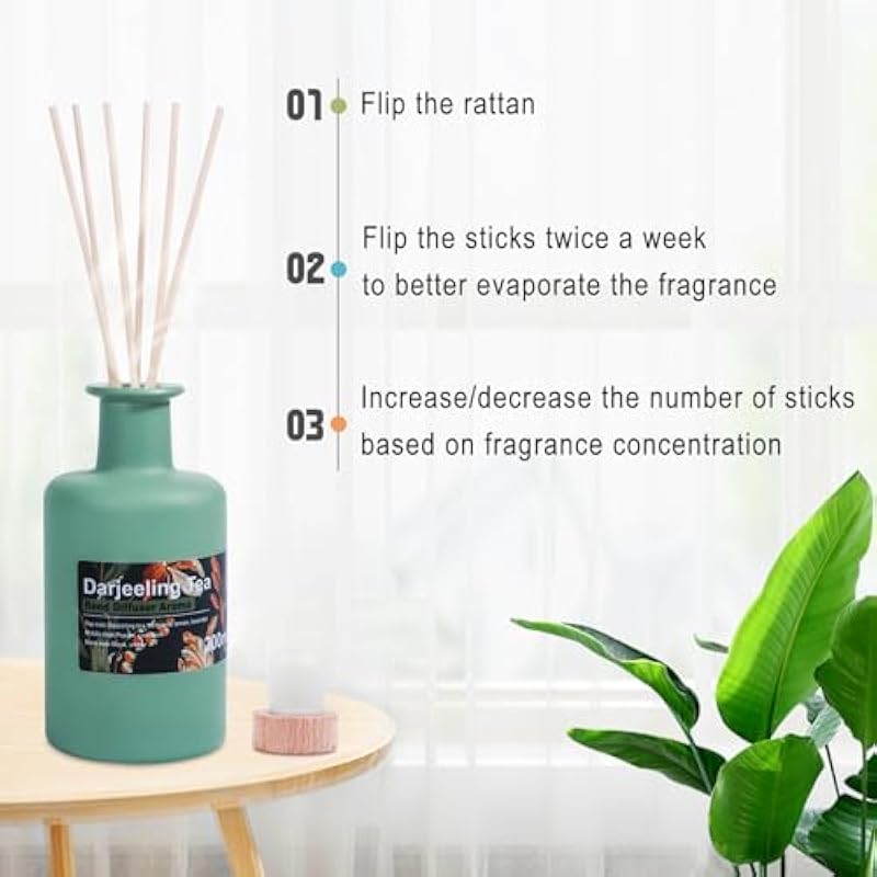 - [ Darjeeling Tea Fragrance ] – Top note: Darjeeling tea, bergamot, lemon, lavender / Middle note: Pepper, carnation / Base Note: Musk, amber. The darjeeling tea, lemon and carnation essential oil emits a fresh tea fragrance. APPROX. 90-120 days long lasting