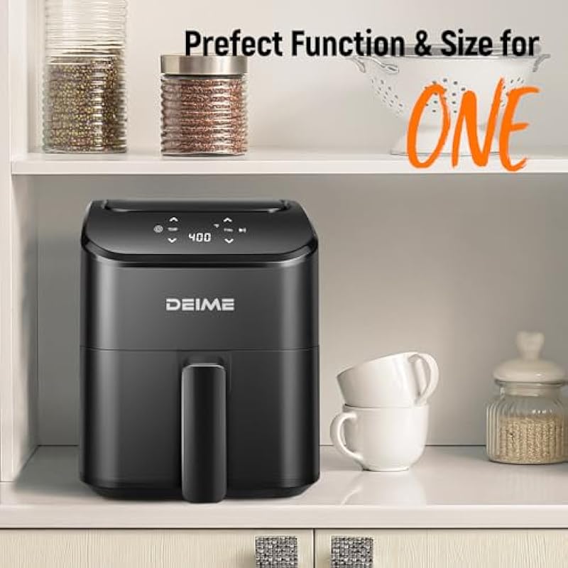 DEIME Air Fryer 3 Qt, Small Airfryer Digital Space Saving Compact, Bake, Reheat, Roasts for Quick Easy Meals, Mini Compact & Quiet, Nonstick & Dishwasher Safe Basket Toast Rack