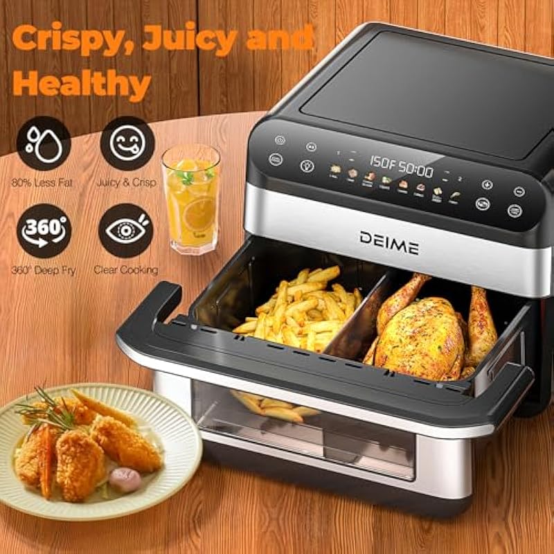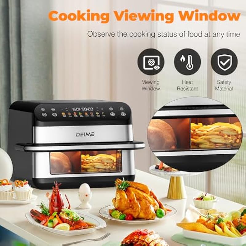 - Multifunctional Air Fryer: With a 10.6 QT capacity, this air fryer is equipped with a high-definition touch screen, built-in cooking light, and heat insulation viewing windows are designed to be the perfect assistant for your cooking and decoration of your kitchen counter. It can replace a variety of kitchen appliances such as a toaster, rotisserie, fruit dryer, oven, etc., perfect for families who pursue a healthy diet.
