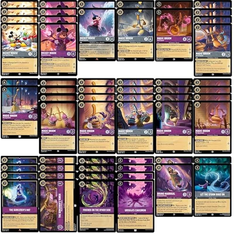 - This deck is an absolute blast to play! The deck features many favorite characters from the mickey mouse franchise including Mickey Mouse, a large variety of magic brooms, and more! The deck combines powerful characters with strong actions and items for a fun gameplay experience.
