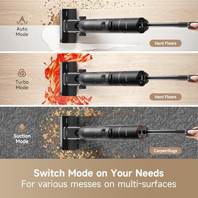 - 【3 Modes to Suit All Your Cleaning Needs】- Auto mode for basic cleaning, Turbo mode for stubborn stains, and Suction mode for vacuuming liquid without water. Both dry and wet messes can be easily handled.