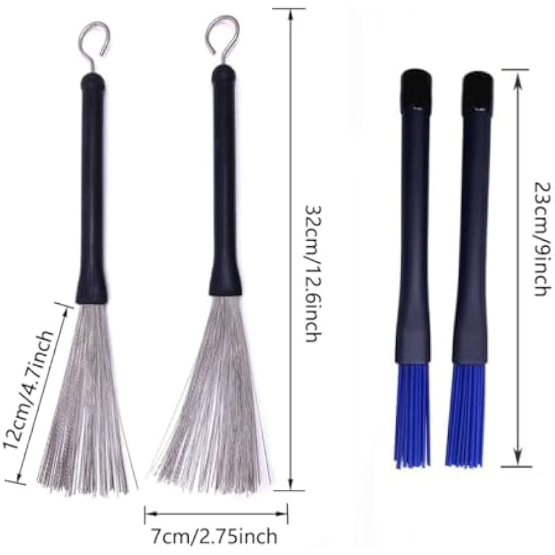 - Size – Drum stick bag is approx. 46 * 10 cm / 18.1 * 3.9 in, Drum brush sticks are approx. 40.5 cm/ 16 inches; The bristles are approx. 75mm/3″, Finished in a rubber handle, convenient to hold and easy to use.