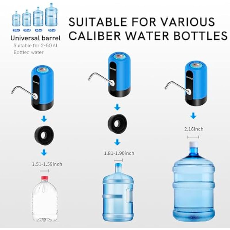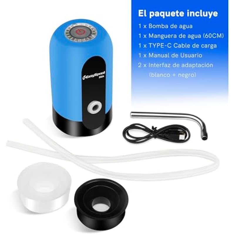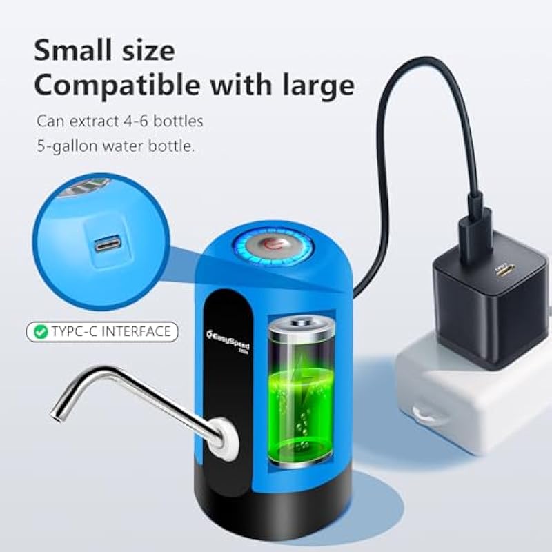 EASYSPEED Water Dispenser for 5 Gallon Bottle Portable Electric Water Pump with 2 Adapters USB-C Charging Battery Powered Automatic Drinking Water Dispenser for Camping, Travel, Office,Black