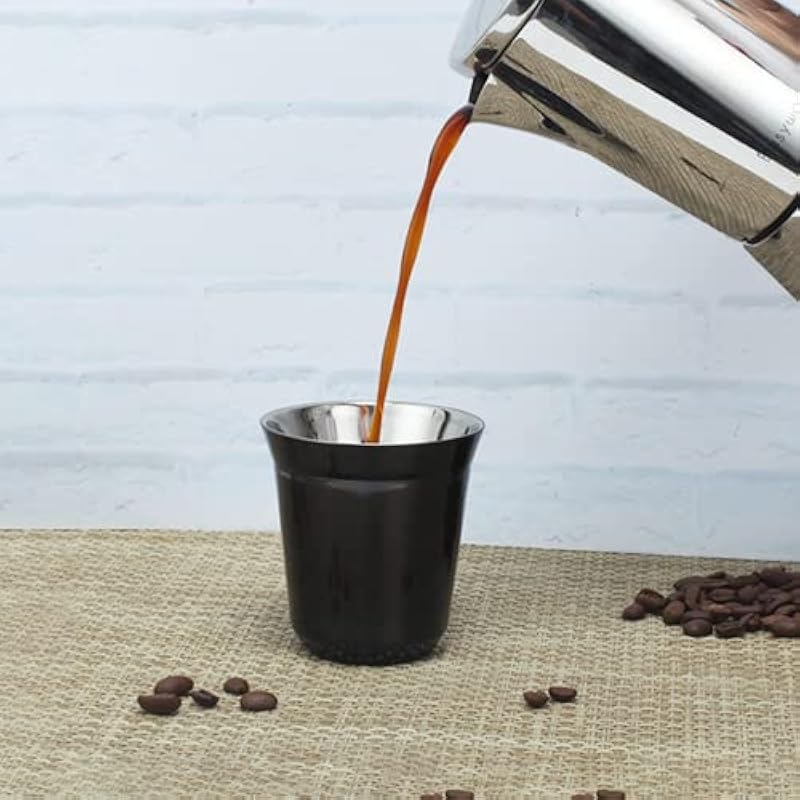 | Style | 200ml moka pot silver & 150ml espresso cup black |