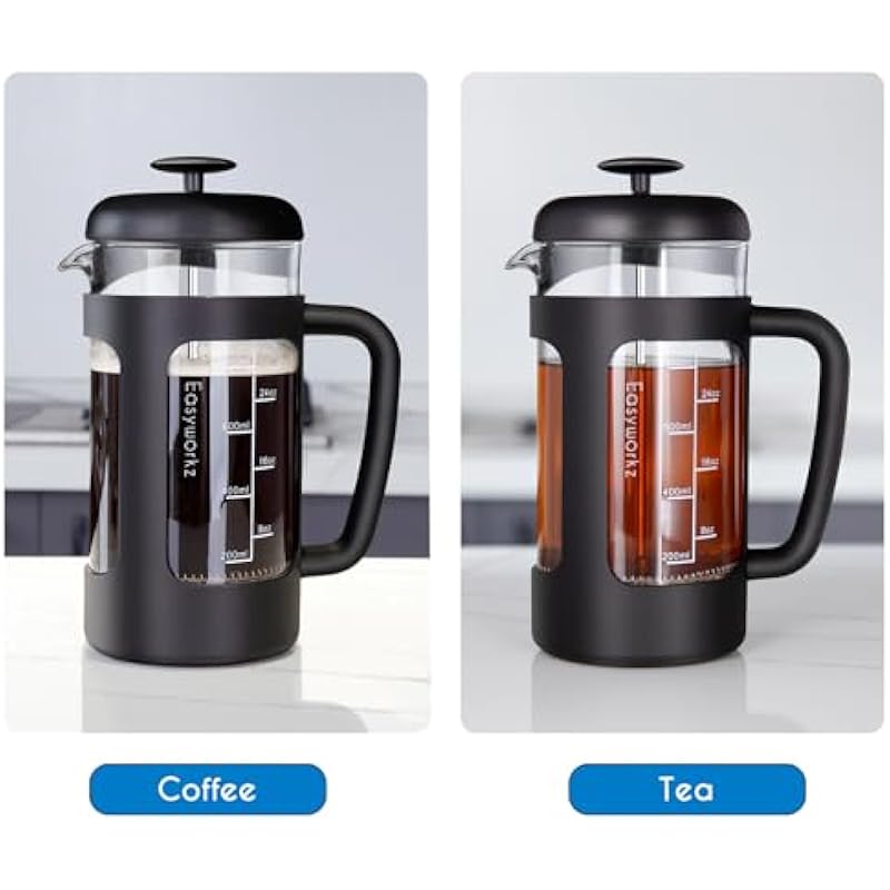 Easyworkz French Press 34 oz Coffee Tea Maker with Borosilicate Glass,Soft Grip Handle Bundled with Glass Replacement