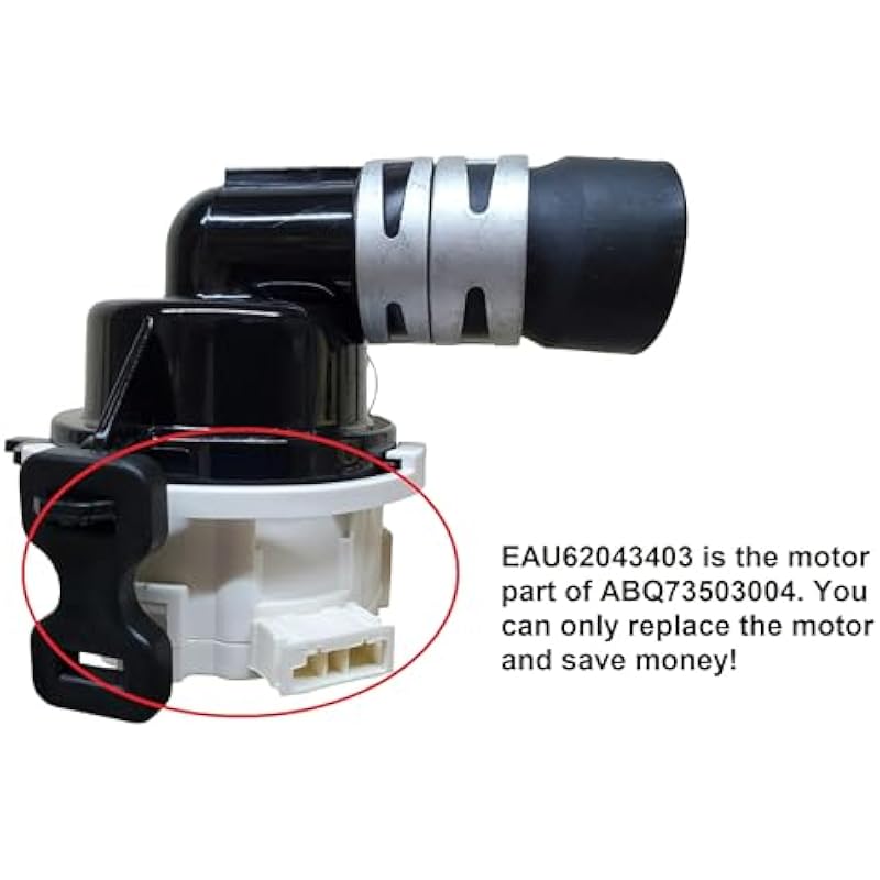 - Part EAU62043403 for LG OEM Motor Replacement for ABQ73503004 and ABQ73503002, Dishwasher DC Pump EAU62043401. You dont need to replace the whole pump ABQ73503004 or ABQ73503002. You can replace only the failed motor EAU62043403 (EAU62043401, EAU60710801 EAU60710802 EAP12742537 PS12742537 PS11710287 AP5977162 4963038).