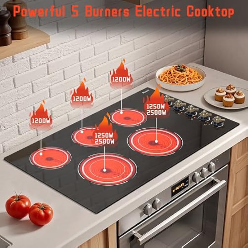 - 🏰| Safety 5 Burners Electric Cooktop | Disaenvir 36in electric stove is designed to meet US Norm specifications and has no electromagnetic radiation, harmless to the body. To ensure safety, Disaenvir ceramic cooktop is equipped with over-temperature protection, auto shutdown protection, and residual heat warning. A safety stove top is a great choice for pregnant women, mom, and the elderly.