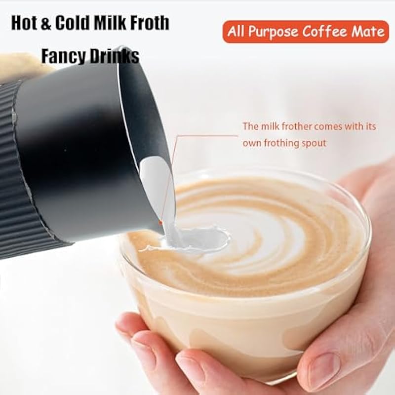 - One Touch Operation: The milk frother adopts one-button design, you just need to simply press the button to start the device, no need for complicated settings or adjustment steps, even the novice coffee maker can easily get started. After one button is pressed, the milk frothers built-in motor or stirring system works quickly to mix the milk with air, creating a fine and dense milk froth in no time