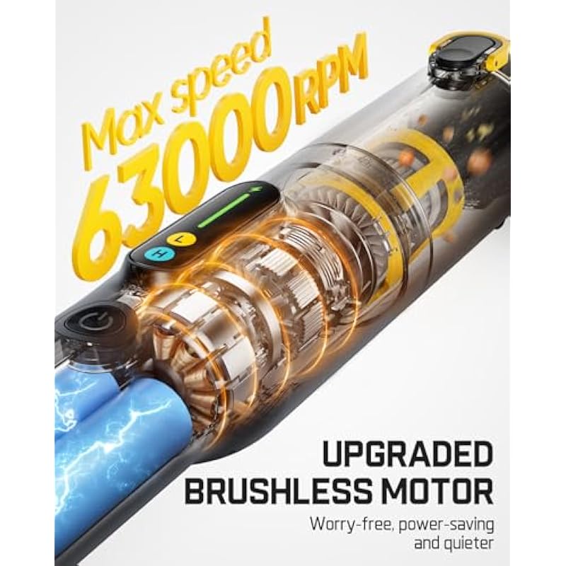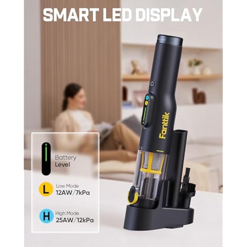 - Brushless Motor: Feel the power of our 70W brushless motor with 25AW suction and 12kPa vacuum. With Fanttik Slim V10 Lite mini handheld vacuum, you can enjoy almost 50% stronger suction, 60% less noise, and a longer-lasting motor compared to conventional designs