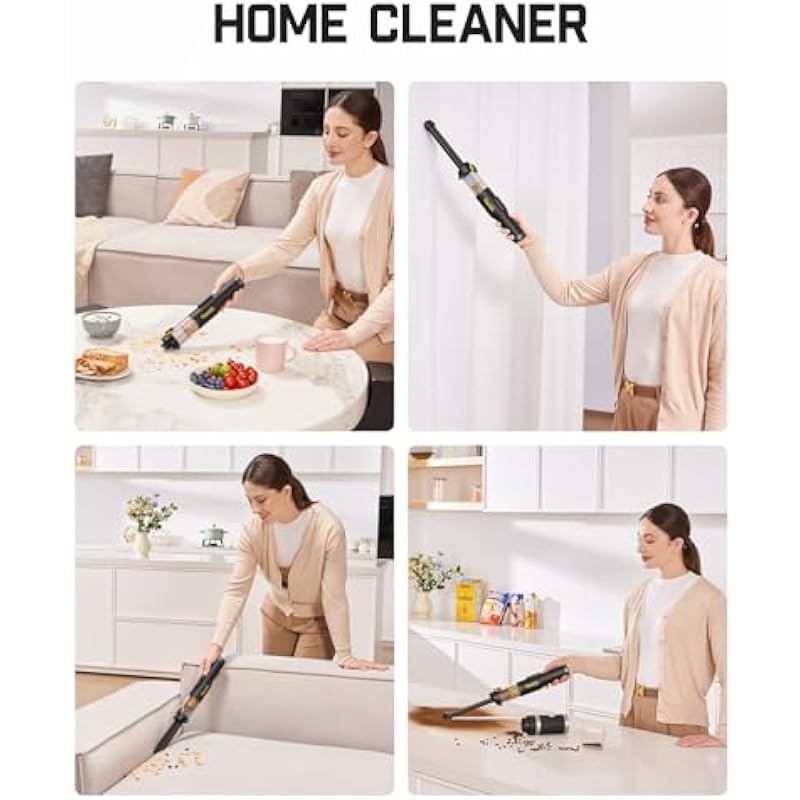 - Lightweight and portable: Ultra-light and portable at just 0.98 lb, this cordless handheld vacuum lets you lift and clean for up to 20 minutes without strain. Its compact design starts instantly with one hand, tackling sudden messes like spilled milk powder, snack crumbs, dust, kitchen counters, and car crevices with ease