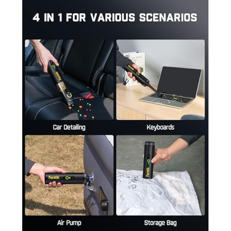 - Portable Mini Car Vacuum: Are you still worried about how to clean the corners of your car? Fanttik V8 Mate comes with multiple accessories to effortlessly clean every hard-to-reach corner