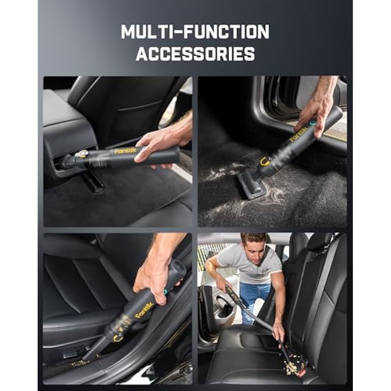 - 4-in-1 Multifunctional Mini Vacuum: Fanttik V8 Apex car vacuum cleaner cordless comes with multiple accessories to meet all your different needs. Vacuuming, blowing, inflating, pumping