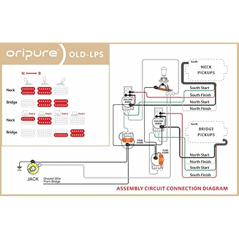 - Prewired 2T2V wiring harness kit with separate 3-way toggle switch, which fit for LP style electric guitar with 4-wires humbucker pickup.