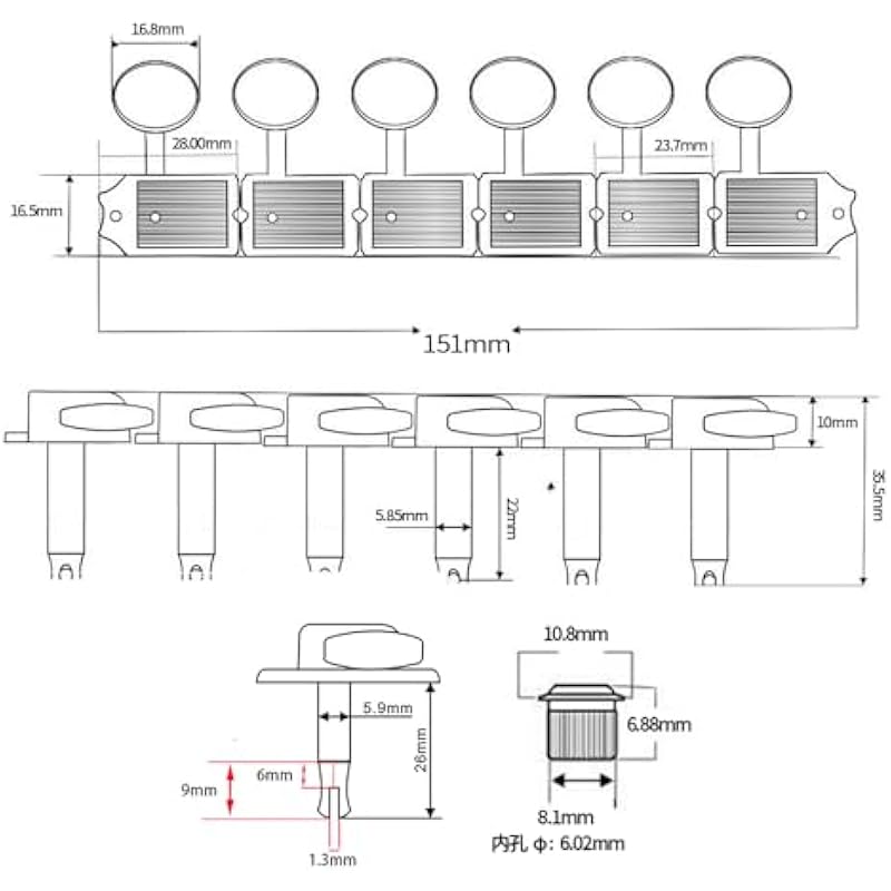 - Package includes: 6 individual tuners, bushings, washers and mounting screws.