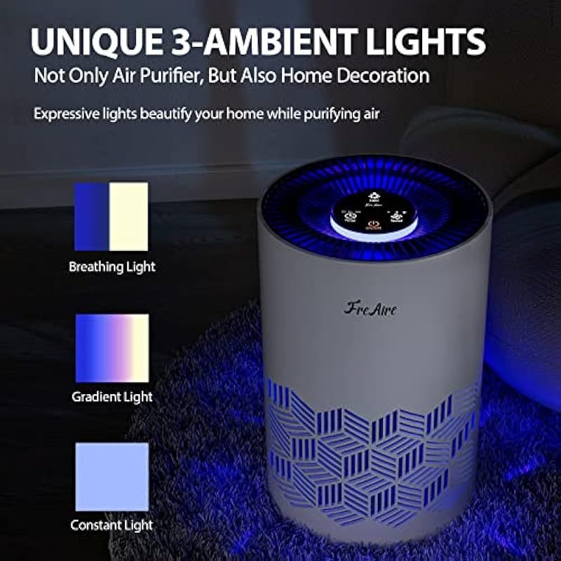 FreAire Air Purifiers for Home, HEPA Air Purifier with RGB Light Air Cleaner For Bedroom Air Cleaner with Speed Control For Dust Smoke Pollen Dander Smell (White)