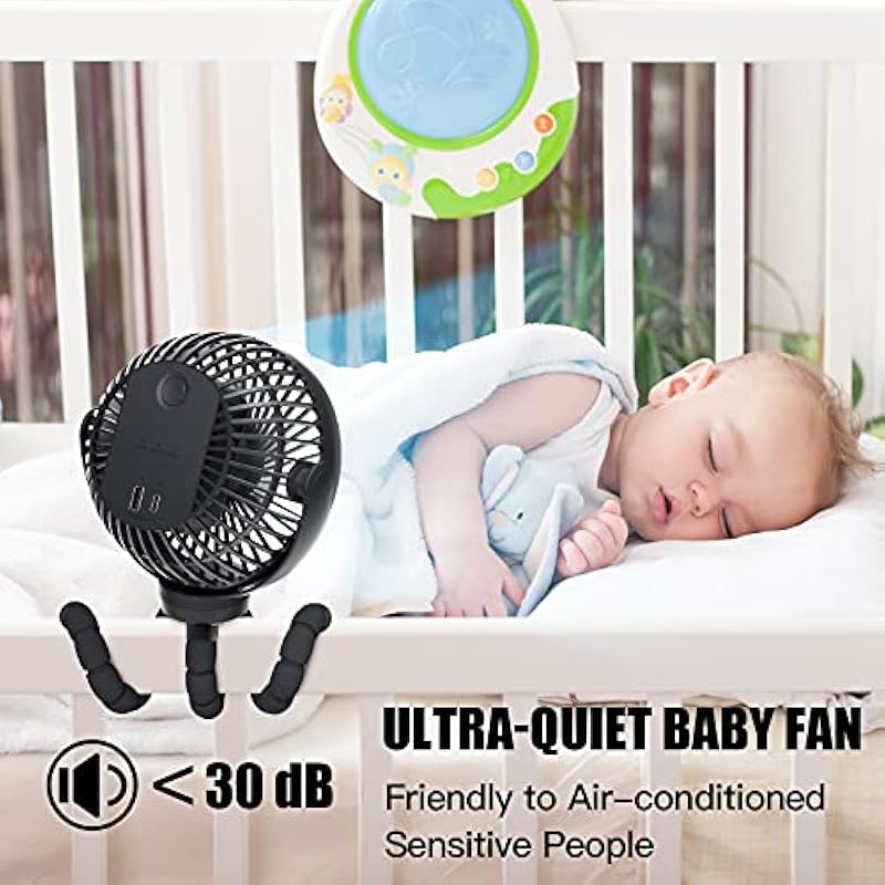 - IMPROVED COOL AIRFLOW, MIGHTY YET QUIET BRUSHLESS MOTOR: Small but sturdy, this small portable baby fan has three different speeds, designed to keep your baby cool without an irritating noise. Its powerful 5000RPM turbo motor, giving you an instant breeze of up to three meters. Mighty yet quiet fan for baby stroller, bed, office, home. Now is the time to invest in a decent portable fan that will keep you cool all summer long.