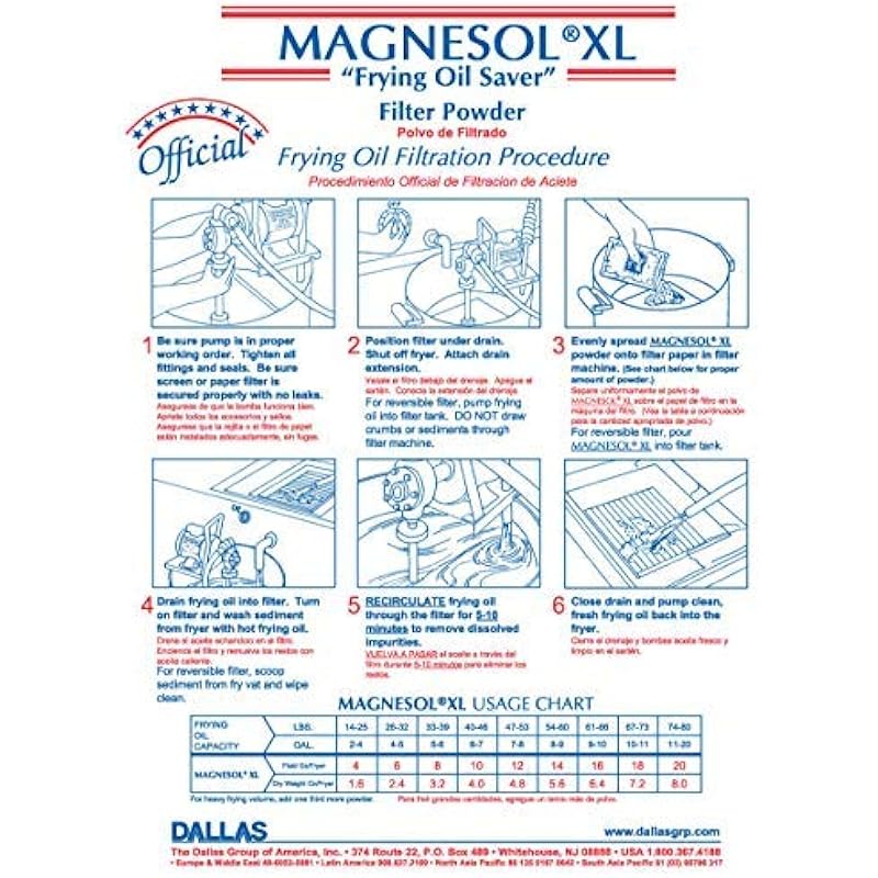 - 4. Do you want to double the life of your frying oil? Do you want to cut your costs on frying oil? Do you want cleaner frying oil and more delicious fried foods? POUR – DRAIN – RECIRCULATE – PUMP – enjoy. Filtering daily with MAGNESOL XL gives you more than twice the days of optimum frying quality