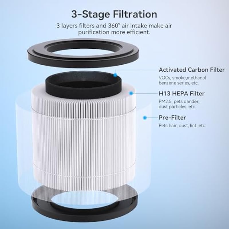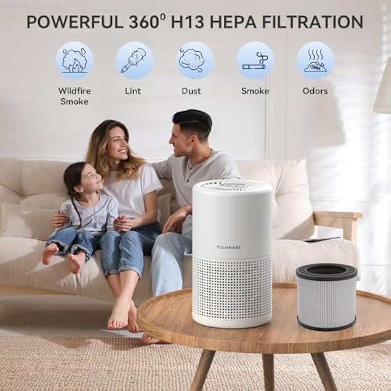 - Powerful Filtration Performance: FULMINARE H13 HEPA air purifier filter has 360-degree air intake and covers an area of 215 square feet/20 square meters, which can effectively filter 99.97% of particles as small as 0.01 microns, including smoke, pet dander, etc. Relieve allergies, breathe fresher, and live healthier.