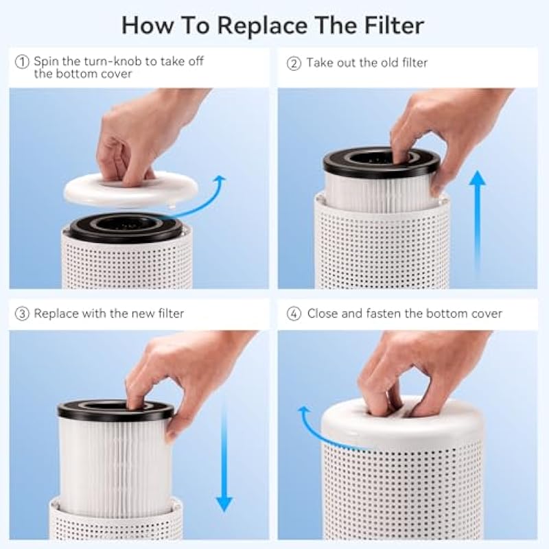 - Easy Filter Replacement: We recommend replacing the filter element every 3-6 months under normal circumstances (depending on the air quality in your area and the use of air purifiers). It takes just 30 seconds to change a new filter manually. Simple, convenient and quick!