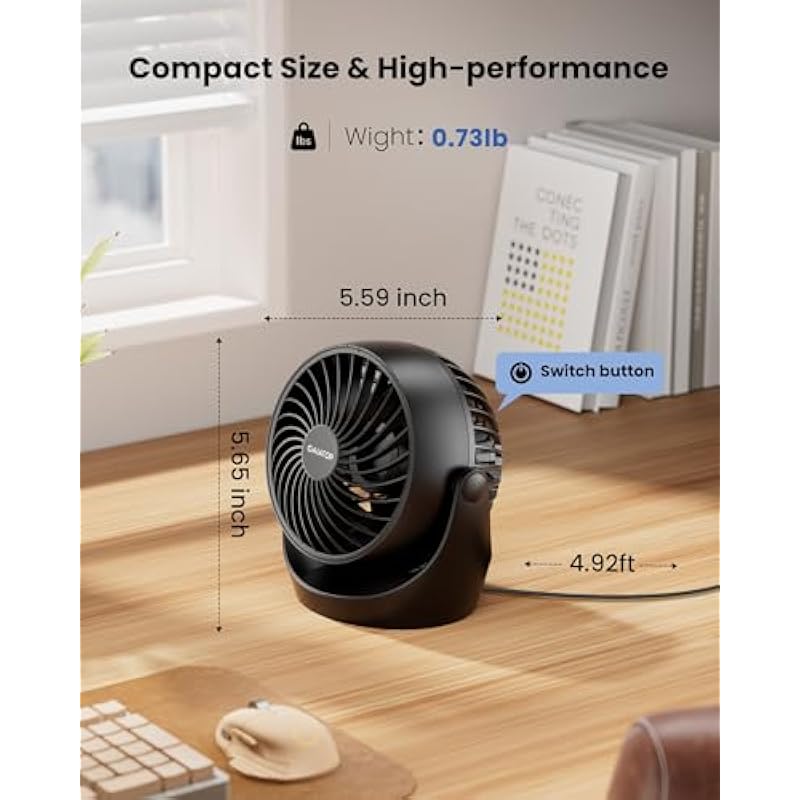 Gaiatop Portable Camping Fan with LED Lantern, 360°Rotation and Clip on for Desk, 4000mAh USB Rechargeable Battery Powered, Digital Display and Hanging Hook for Tent Outdoor Travel Bedroom Black